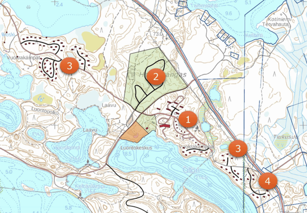 The total area of vacant plots in the Visitor Centre Area is 67,830 m². There is a total of 12,775 square meters of building rights. The plot next to the nature centre alone has an area of 12,530 m² and a building right of 4,000 square meters.